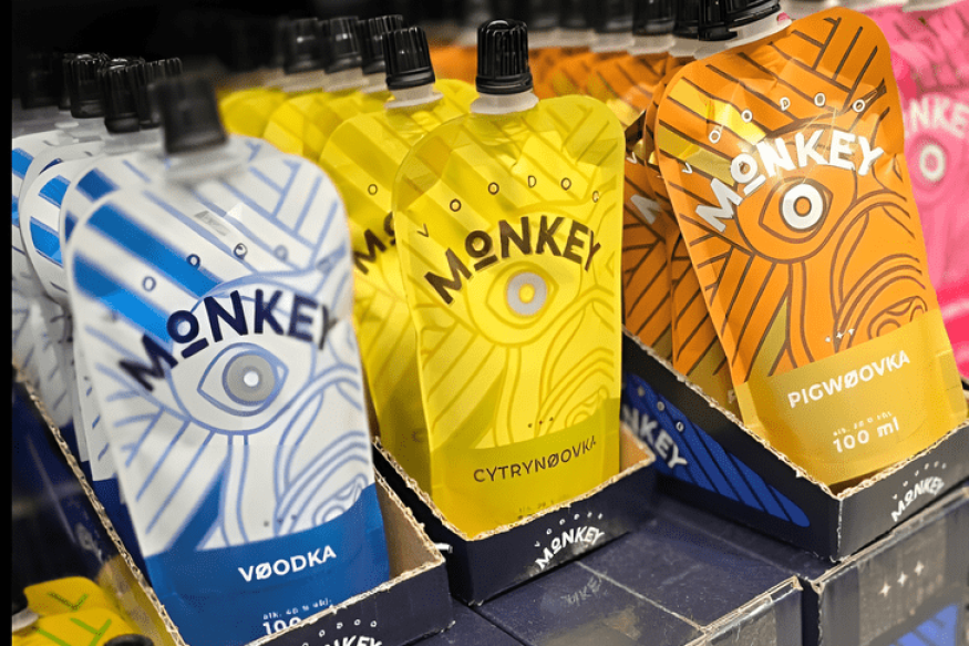 Однако в пакеты, выпущенные под брендом Voodoo Monkey, разлиты либо чистая водка, либо фруктовые ликеры крепостью от 15 до 40 градусов. Voodoo Monkey, скорее всего, отсылает к польскому слову małpka, что означает «маленькая обезьянка» — так в Польше называют маленькие бутылочки водки или другого алкоголя.