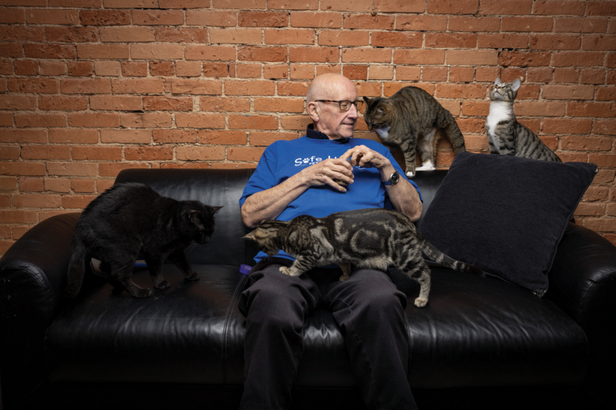 Вечера пенсионер проводит в приюте Safe Haven, где заботятся о кошках с особыми потребностями, переживших травмы или жестокое обращение. Терри особенно нравится, что в этом приюте животных не держат в клетках.