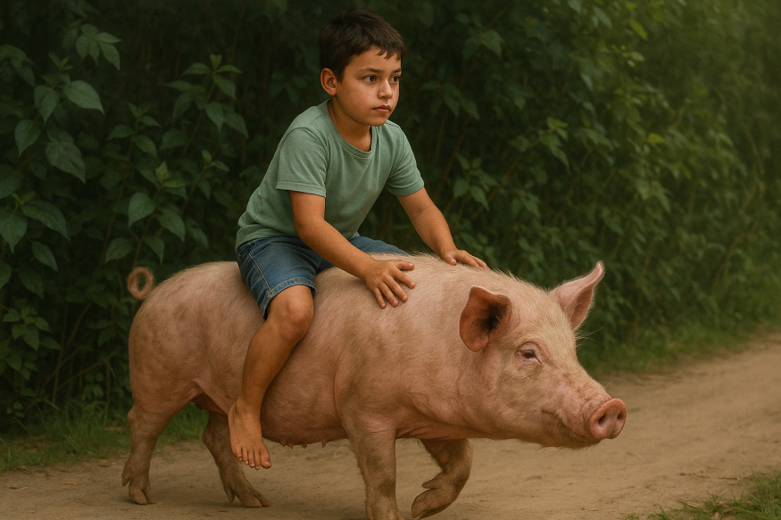 Гутинью Рока стал интернет-звездой благодаря своему необычному увлечению — езде верхом на домашних животных, таких как мул, осёл и лошадь. В одном из свежих видео школьник из Бразилии показал, как добирается в школу верхом на любимой свинье по кличке Фугете. По словам его мамы, Аны Паулы, Гутиньо, третий ребёнок в семье, с раннего детства обожает животных и с удовольствием за ними ухаживает.