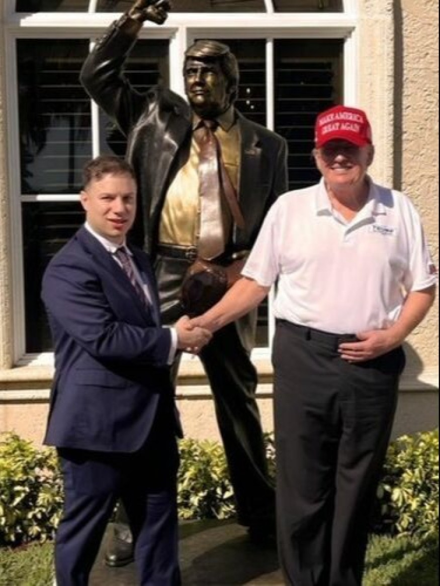 «Генеральный директор компании Sticker Mule и бывший кандидат в Конгресс от штата Нью-Йорк Энтони Константино преподнёс президенту Дональду Трампу памятник, который теперь будет постоянно находиться в его международном гольф-клубе Trump International», — говорится в сообщении.