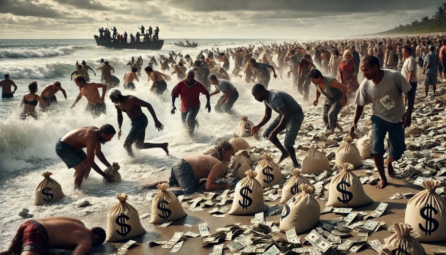 На пляже Кендаллс в городе Киама (Австралия) были обнаружены пачки наличных, выброшенные на берег. Полиция подтвердила, что начала расследование инцидента, однако происхождение денег остаётся неизвестным.