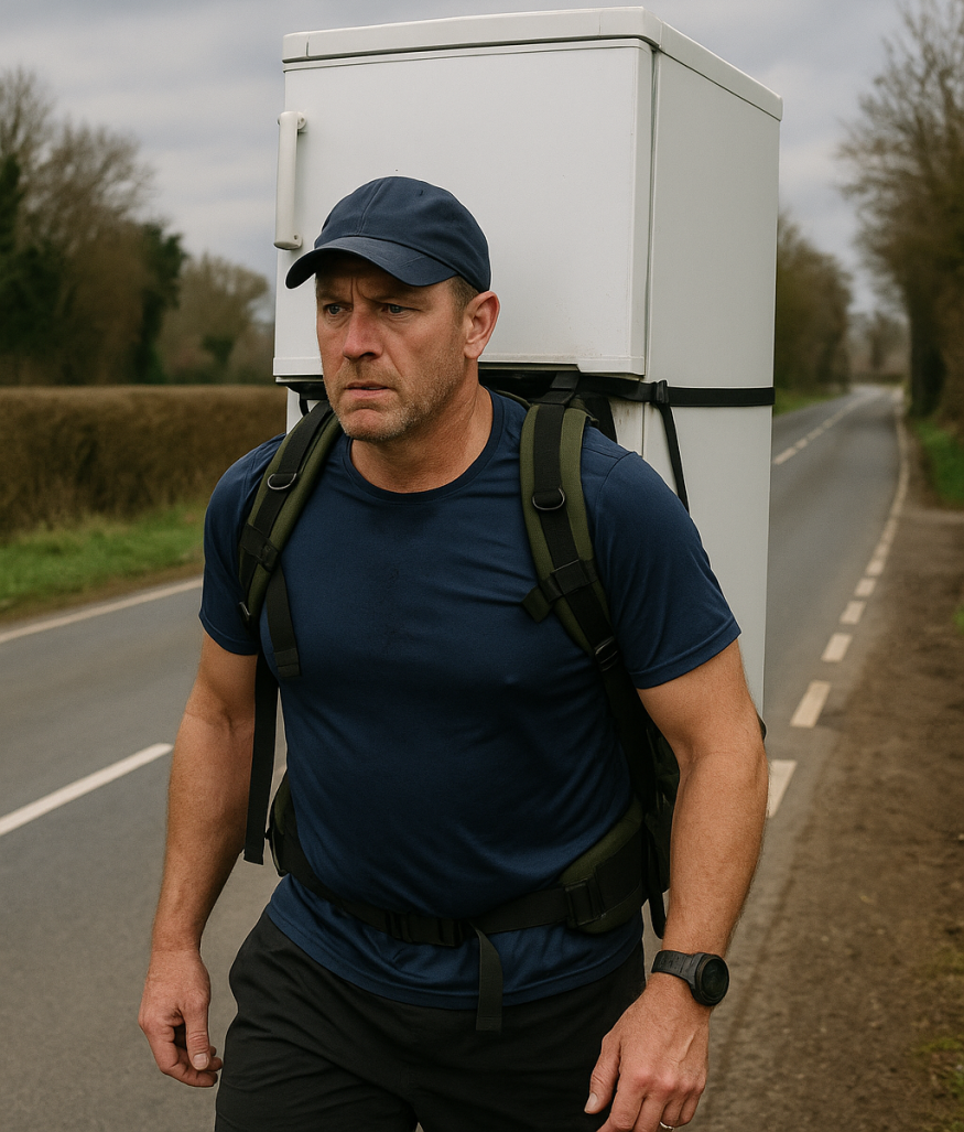 В Британии мужчина прошёл более 100 км с холодильником на спине в память о своей умершей жене.