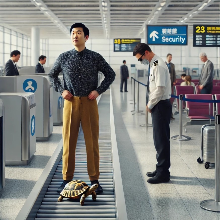 Когда пассажира спросили, спрятано ли у него что-то в брюках, тот «засунул руку в штаны и вытащил живую черепаху, завернутую в небольшое синее полотенце». Мужчина заявил, что это красноухая черепаха. Ее длина, по словам сотрудников отдела безопасности, составляла около 13 см.