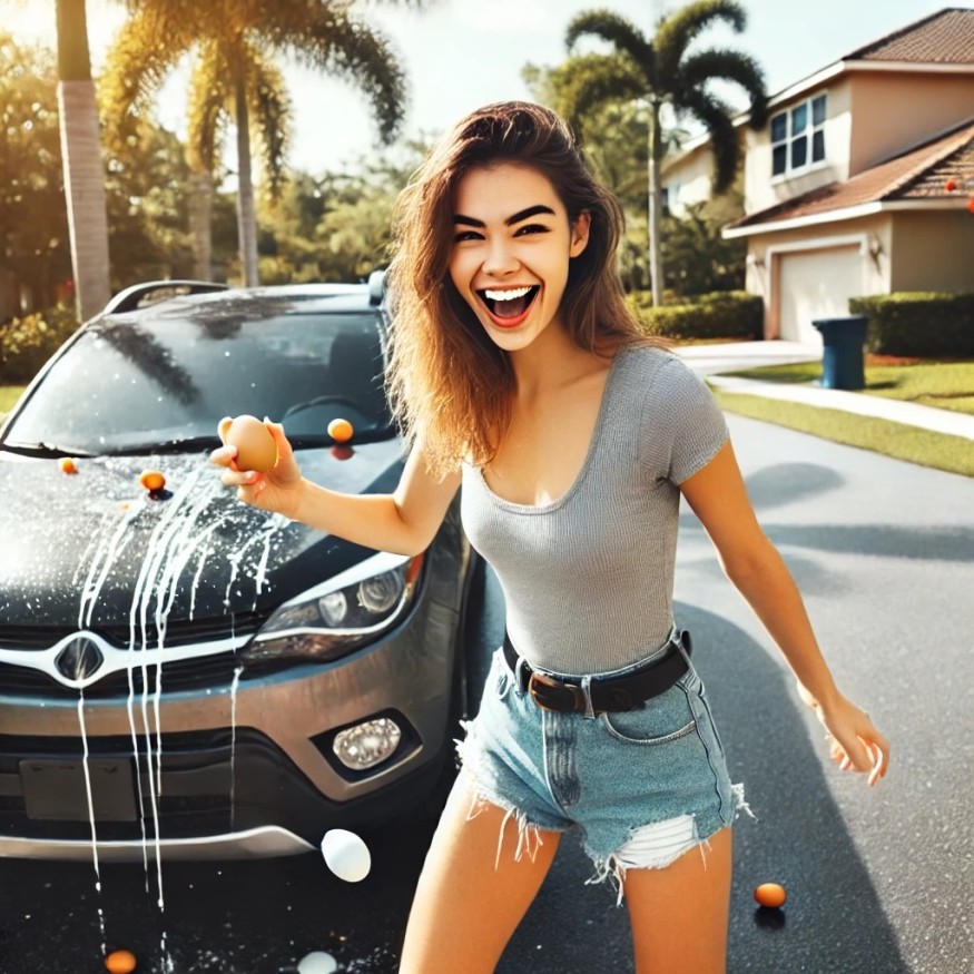 Во Флориде девушка, желая отомстить, разрисовала и забросала яйцами машину своего бывшего, но оказалось, что это не его авто.