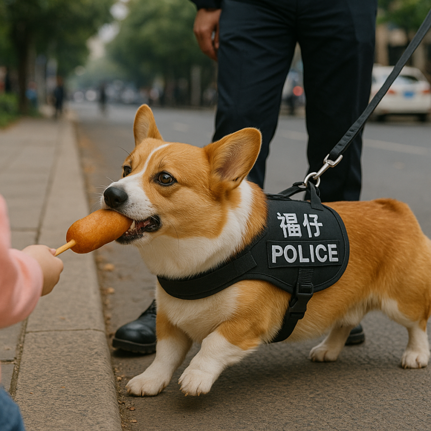 В Китае — громкий служебный скандал. Главный герой — не генерал, не чиновник, а… корги. Да-да, первый в стране полицейский пёс этой милейшей породы. Его зовут Фу Цзай, ему полтора года, и, как выяснилось, у него есть серьёзная слабость — сосиски.