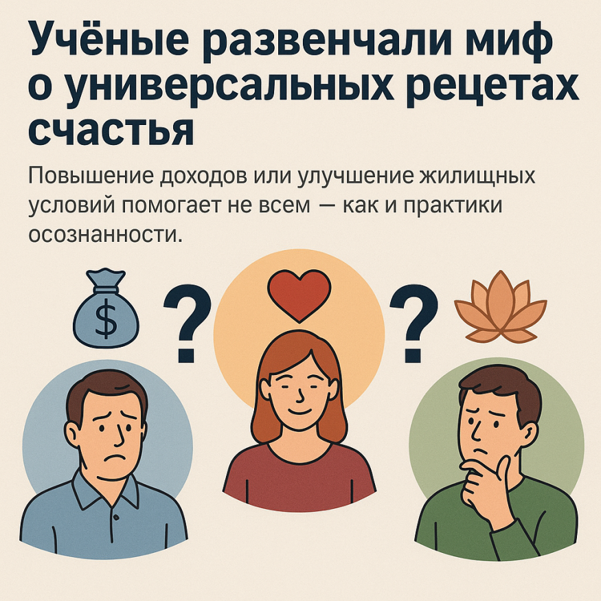 Новое исследование, опубликованное в Nature Human Behaviour, показало: счастье не универсально — его источники уникальны для каждого человека. Анализ данных из пяти стран за 33 года выявил, что для одних счастье зависит от работы и дохода, для других — от внутреннего состояния. Универсальные рецепты не работают.