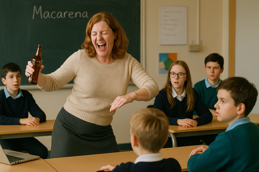 Вместо урока она включила музыку на ноутбуке и предложила детям танцевать макарену. Позже её поведение изменилось — она начала ругаться и показала одному из учеников оскорбительный жест.