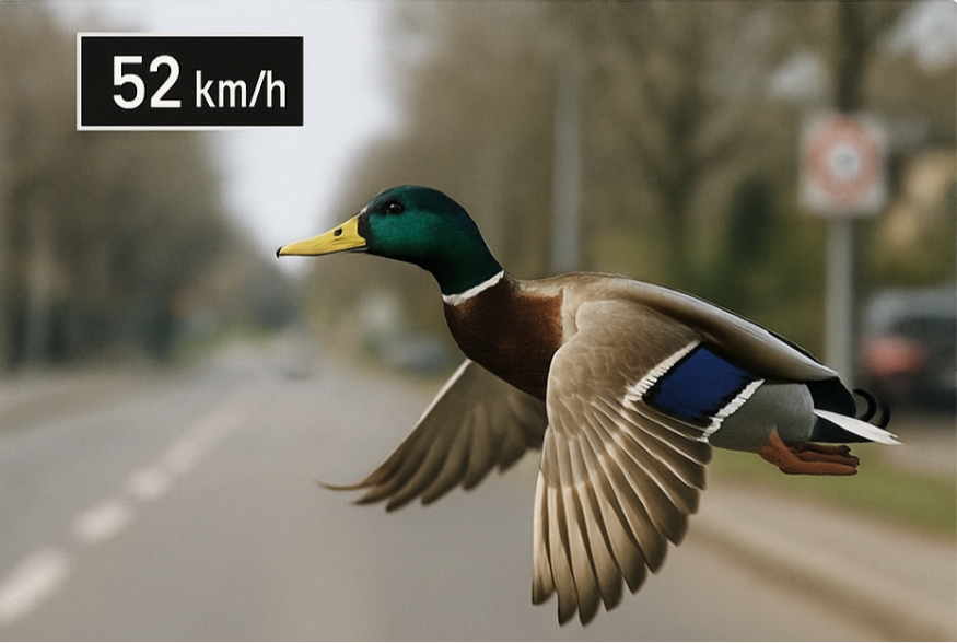 В швейцарской коммуне Кёниц дорожная камера зафиксировала утку, нарушающую скоростной режим. Птица летела на 20 км/ч быстрее разрешённого лимита.