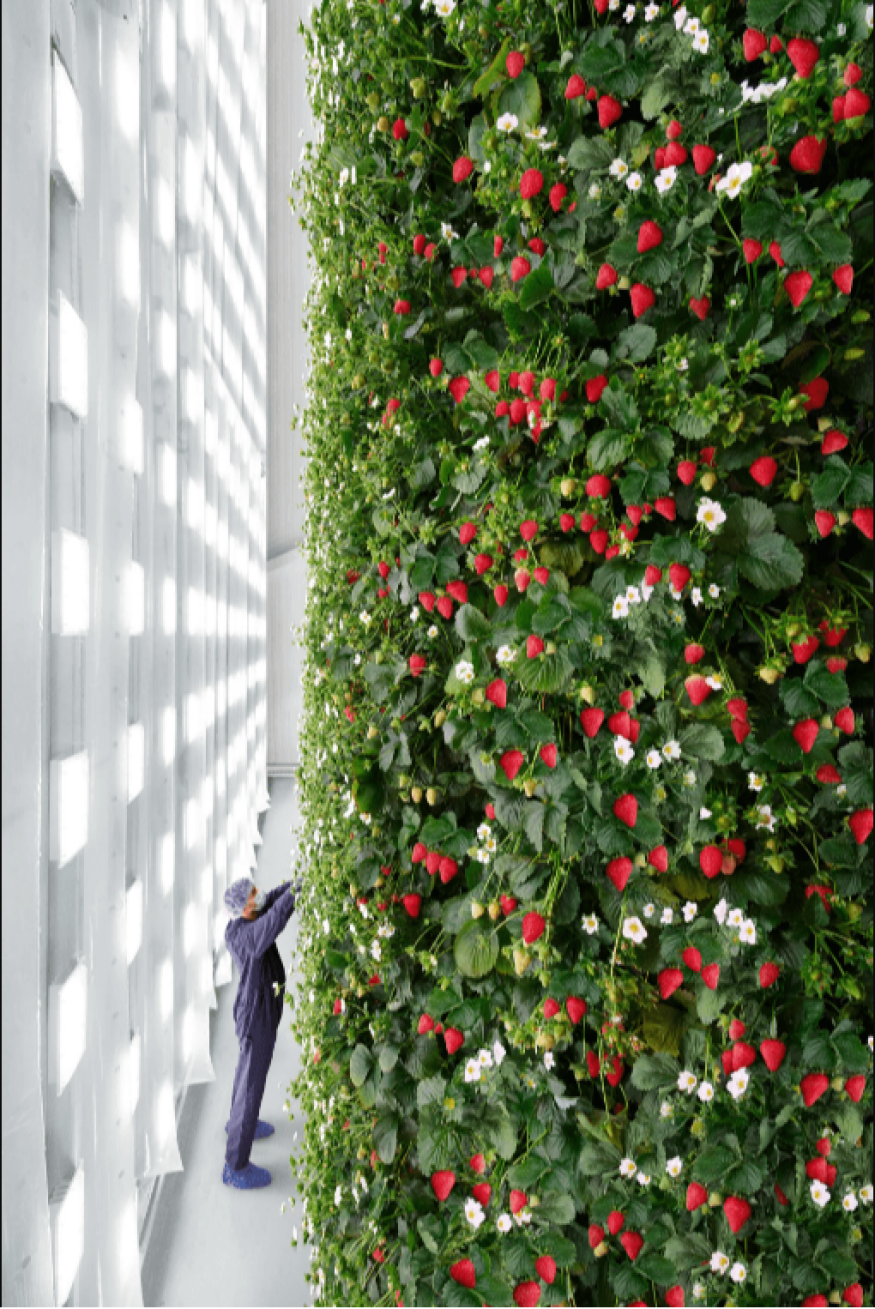 Ферма Plenty Richmond спроектирована таким образом, чтобы ежегодно производить более 1,8 млн килограммов клубники на площади менее одного акра. Урожай достигается благодаря передовой технологии вертикального земледелия: клубника растет на башнях высотой девять метров на площади менее 3,7 квадратных метра в контролируемой среде.