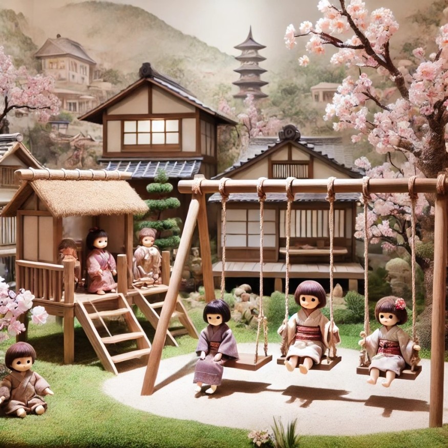 Тряпичные марионетки создают видимость оживленной жизни в Итиноно. Куклы «катаются» на качелях на детской площадке, «перевозят» дрова в дома и даже «ездят» на велосипедах.