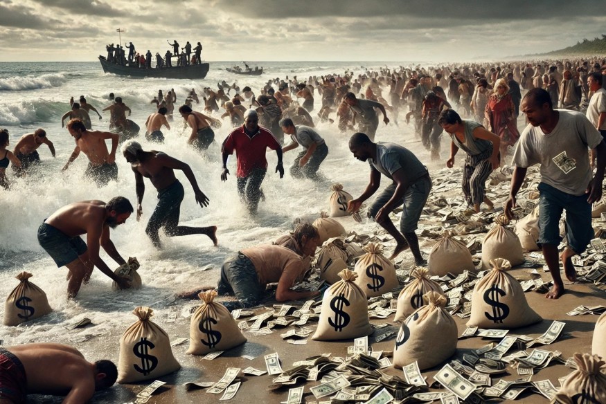 Люди бросились собирать деньги: к пляжу прибило сумки с наличными