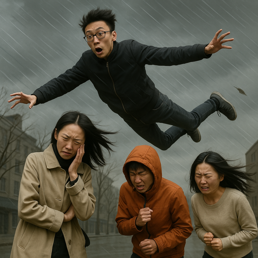 Тема сильных ветров и предупреждение о том, что людей весом менее 50 кг может унести, стали трендом в китайских соцсетях. Один из пользователей саркастически заметил: «Я всегда так много ем — всё ради этого дня».