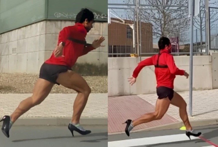 В Испании прошёл необычный забег, который вошёл в Книгу рекордов Гиннесса. Профессиональный бегун Роберто Лопес Родригес преодолел стометровку в синих туфлях на каблуке высотой 7 сантиметров — и сделал это спиной вперёд. Его результат — 16,55 секунды.